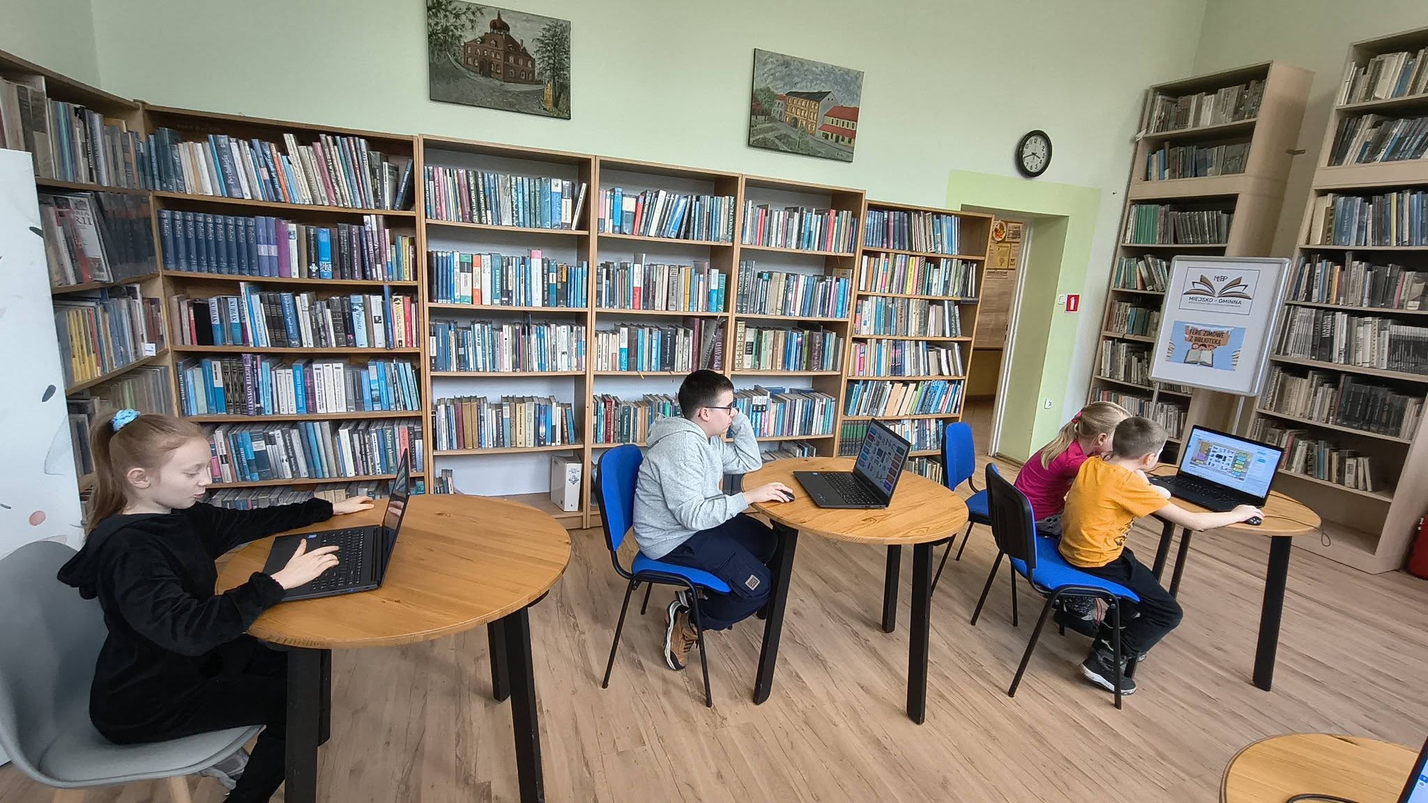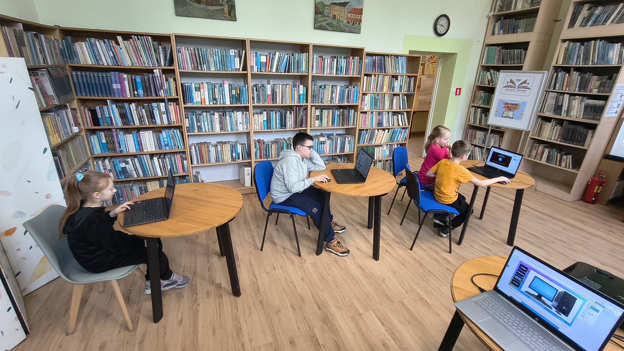 Uczestnicy świetnie poradzili sobie z zadaniami, wykazując się dużą pomysłowością i zaangażowaniem, pokazując, że zdobywanie wiedzy o komputerach może być naprawdę ciekawe i pełne dobrej zabawy. Do zobaczenia na kolejnych kreatywnych warsztatach komputerowych „KLIK!” w Bibliotece.