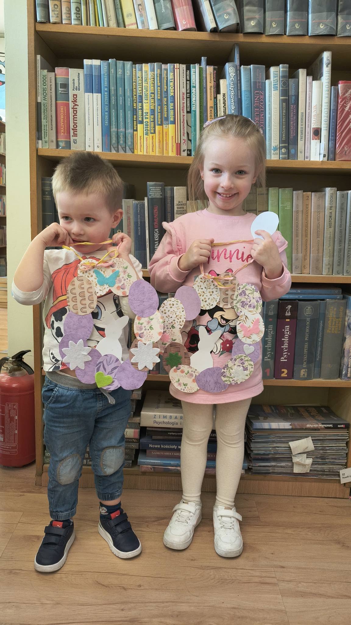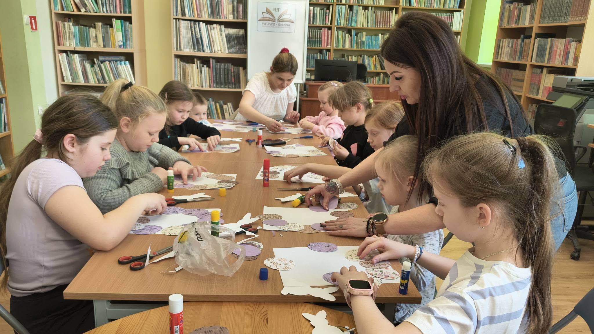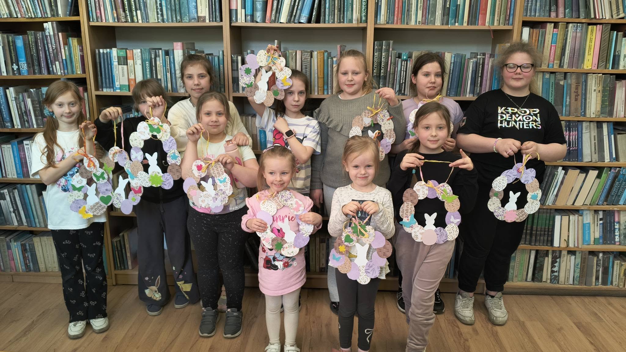 Kreatywne zajęcia plastyczne z Biblioteką upłynęły dziś, 19 marca 2026 r., w prawdziwie wiosennej i świątecznej atmosferze. Dzieci tworzyły wielkanocne wianki z papieru. Najpierw sklejały kolorowe pisanki i zajączki, z których powstała baza wianków. A potem zaczęła się prawdziwa zabawa – dodawanie kokardek i różnych kolorowych ozdób. Efekt? Przepiękne i pomysłowe wianki, które będą wyjątkową dekoracją na Wielkanoc i powodem do dumy dla naszych młodych uczestników zajęć plastycznych w Bibliotece.